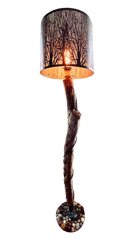Beach Walk Floor Lamp Custom OrdersThis floor lamp was designed with a Madrone driftwood log, emphasizing its spiral shape. Although the lamp shade was purchased, we are currently designing and will soon be producing shades similar to this in the very near future! Stay Tuned!